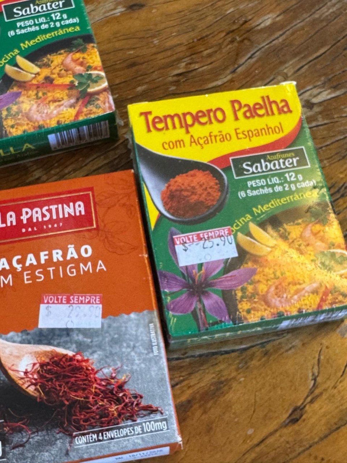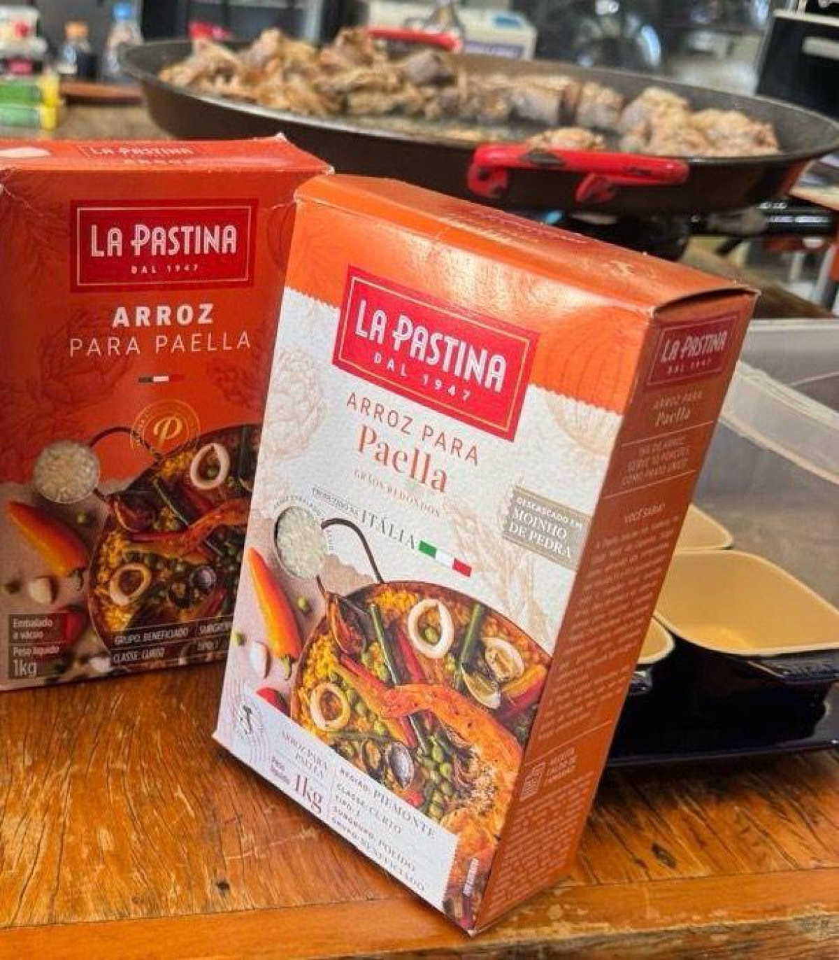 Para o preparo deste prato, o chefe recorreu ao arroz bomba, peito de frango, costelinha de porco, camarão, polvo, lula, peixe branco, mexilhão, pimentão, açafrão e outras especiarias para paella.