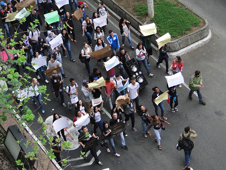 Alunos da Escola Estadual Delfim Moreira protestam no Centro de JF
