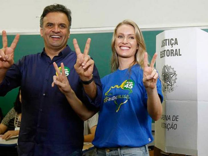 Em BH, Aócio vota acompanhado da mulher e de aliados