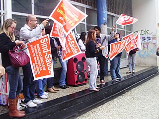 Em greve desde o dia 5 de julho, os servidores da Superintendência Regional de Saúde (SRS) realizaram uma nova manifestação na manhã desta quarta-feira, 1º de agosto, em frente ao Pam Marechal, na rua Marechal Deodoro. Munidos de faixas, cartazes, apitos e caixa de som, os grevistas prestavam esclarecimentos à população a respeito das reivindicações e denunciavam as práticas consideradas irregulares pela administração estadual.