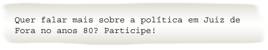 Veja abaixo relatos de algumas pessoas que viveram o cen?rio pol?tico da d?cada de 80 em Juiz de Fora. Elas relembram acontecimento importantes, confira: