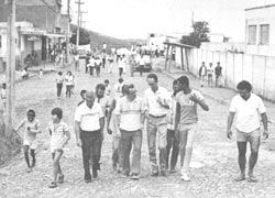 A pr?tica de participa??o n?o era f?cil, j? que o pa?s, como um todo, havia vivido 20 anos de ditadura. "As pessoas ficavam temerosas e corria-se um certo risco, claro. Foi dif?cil, mas havia uma turma de vanguarda, que tinha coragem de avan?ar dessa forma". Ao ser prefeito, pela primeira vez, conta que formou uma equipe com pessoas novas, como ele diz, "a meninada da faculdade". "Eles participavam com resist?ncia ? ditadura e conscientes. Causou-se um estranhamento, porque n?o foram pessoas de indica??o", recorda-se. A primeira a??o de seu mandato que recorda-se foram os mutir?es dominicais. "?amos aos bairros, todos os secret?rios, and?vamos e v?amos os problemas do local e depois de uma reuni?o e debates, perguntava-se a comunidade quais os problemas mais graves, de prioridade. Lan?amos um trabalho em mutir?o para fazer rede de esgoto, entre outras coisas, com a ajuda dos moradores que quisessem. ?amos com os t?cnicos e os moradores ajudavam. A melhor obra que havia era essa, porque havia esp?rito comunit?rio". |