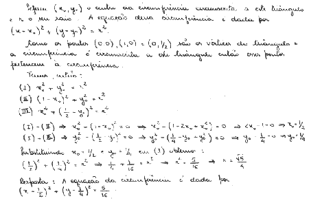 Sejam os pontos (0, 0), (1, 0) e (0, 1/2) os vértices de um triângulo no plano cartesiano. Determine a equação da circunferência circunscrita a este triângulo.