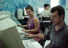 Uma menina, Renata, freq?entava o cibercaf? para conversar online com o noivo, que foi morar em Portugal. Ela estava terminando a faculdade de Direito e preparando tudo para o casamento. Os detalhes da cerim?nia, da festa, tudo ela resolvia com o noivo pela Internet. Ele veio ao Brasil s? para se casar, e chegou ao pa?s apenas dois dias antes disso. Hoje os dois moram em Portugal.