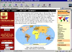 Mas, se voc? n?o tem o livro e ? um turista precavido, antes de sair de casa, ao programar a viagem, j? pode acessar o portal vertical Cybercafes.com. A base de dados do site oferece as informa?es sobre os cibercaf?s, em l?ngua inglesa, atrav?s de busca por pa?ses e cidades de todo o globo. Endere?o, telefone, pre?o do acesso e o que o espa?o oferece est?o entre as informa?es comuns. (Ao procurar por cibercaf?s em Juiz de Fora, o viajante ter? as informa?es necess?rias para chegar ao Artcaf?.)