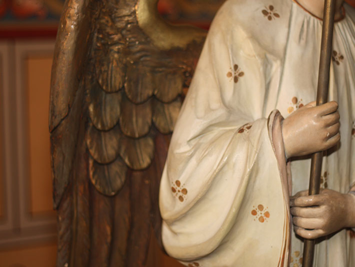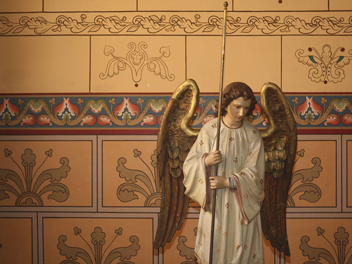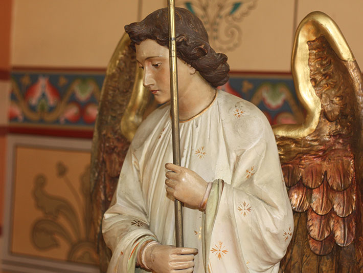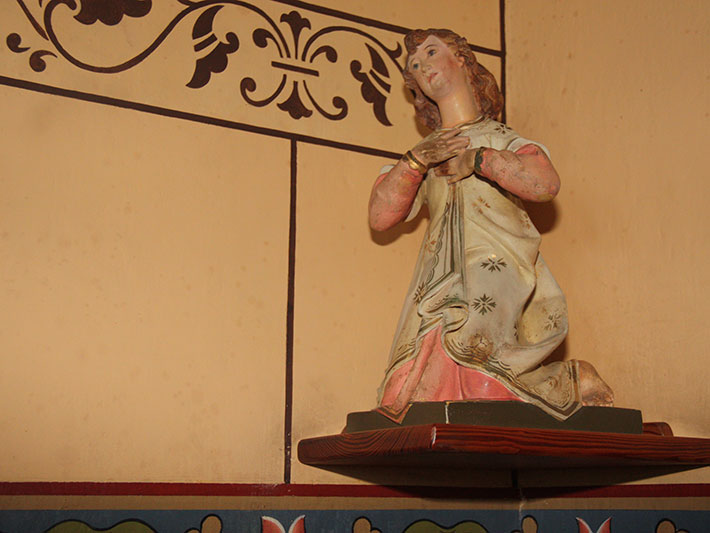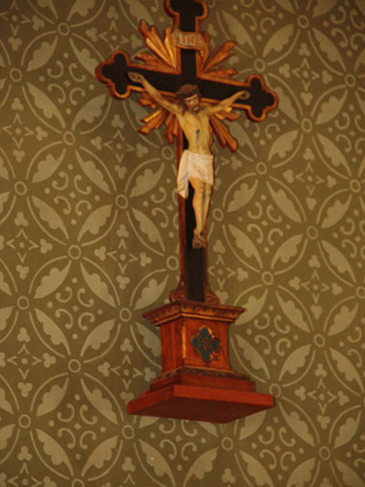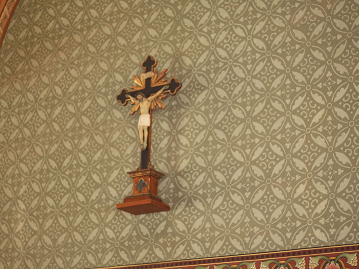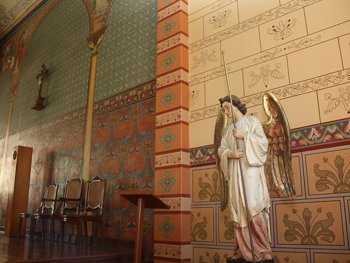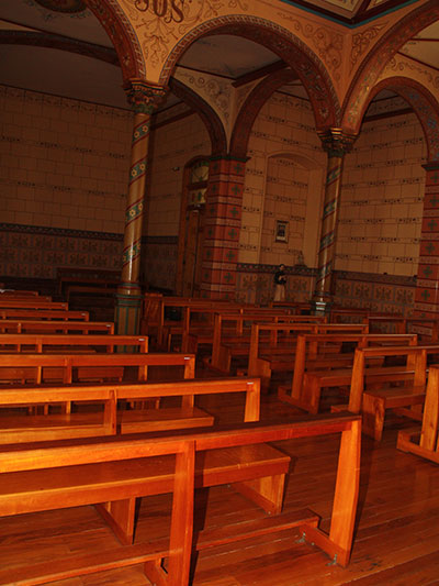 As portas de pinho de riga da capela foram abertas. A primeira visão foi do altar, a nave para a Assembleia e o crucifixo original, com a imagem do Nosso Senhor Jesus, no Santuário da Sagrada Família. O assoalho de ipê tabaco, ressoa repentinamente. Tudo parte dos fundos da capela para sua frente, onde o aumento gradativo da iluminação pode ser visto.