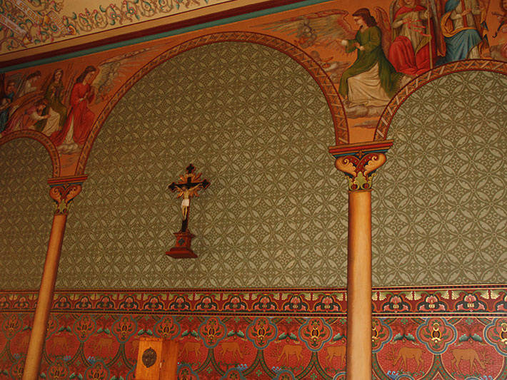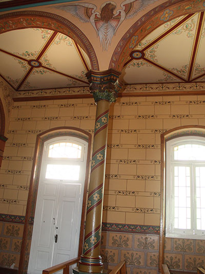 Com a duração de 4 anos, a intenção era de recuperar o antigo e criar o irrecuperável. Em relação à recuperação das pinturas, foram observados o jogo de luz e sombra, os degrades. As folhas de ouro e a grade variedade de cores e desenhos merece destaque.