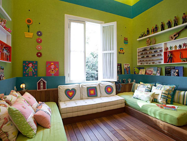 Para harmonizar o quarto as sensações sensoriais de cada criança deve prevalecer, deixando elas determinarem as cores, texturas, disposição do mobiliário de acordo com sua personalidade, porém com a palavra final dos pais, claro!