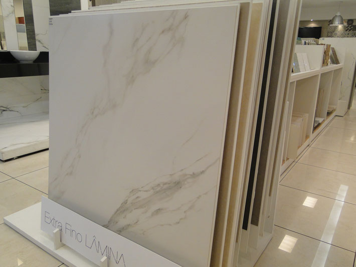Para minha grata surpresa, analisei "in loco", uma linha de porcelanato, extra fino na espessura, que pode ser colocado em cima de outro revestimento já existente, sem quebrar o piso. Uma tecnologia surpreendente, devido a praticidade.