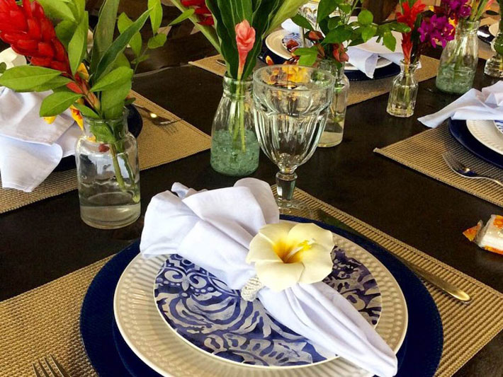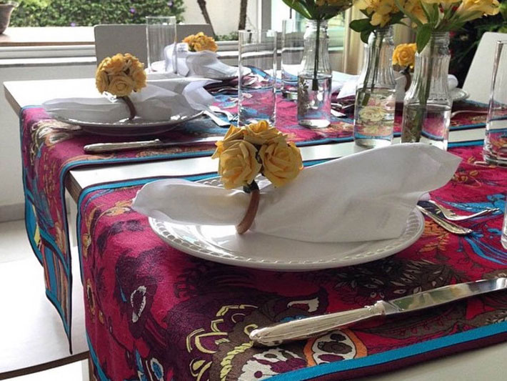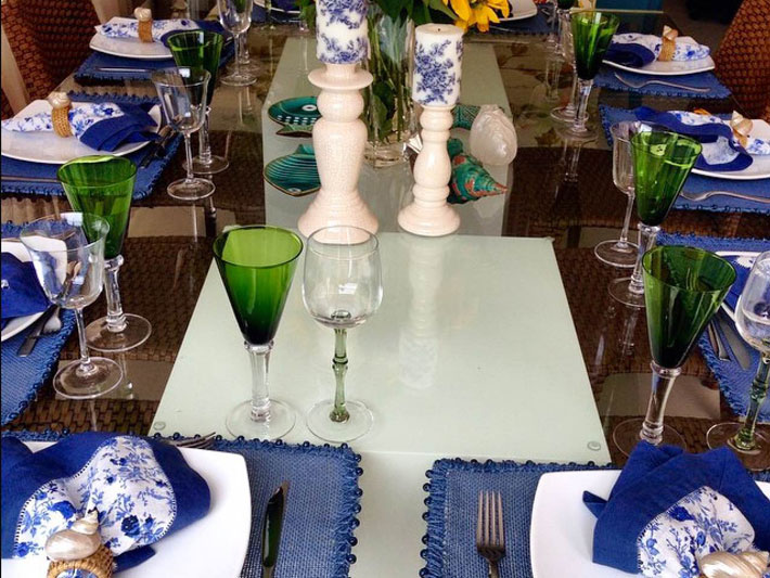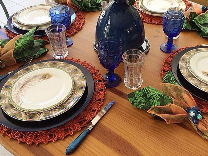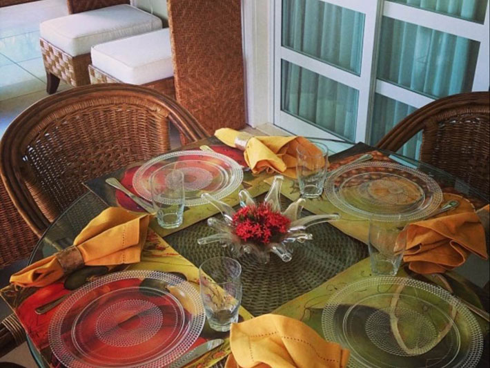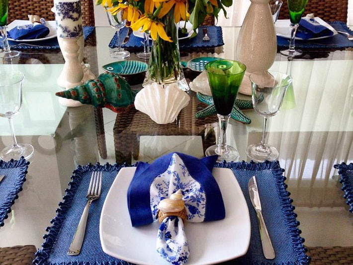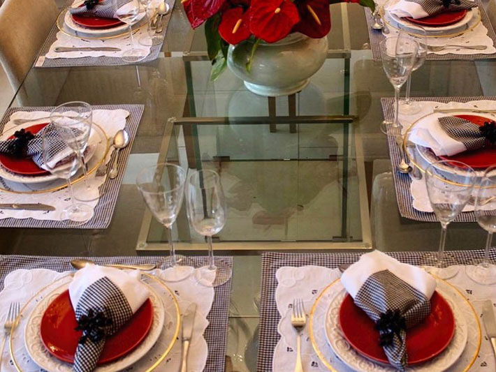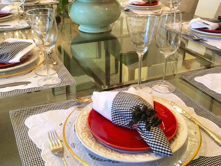 Dicas: Se precisar, faça uma decoração com jogos americanos e toalhas, estão super em evidência. Coloque a toalha na mesa e marque cada lugar com o jogo americano.