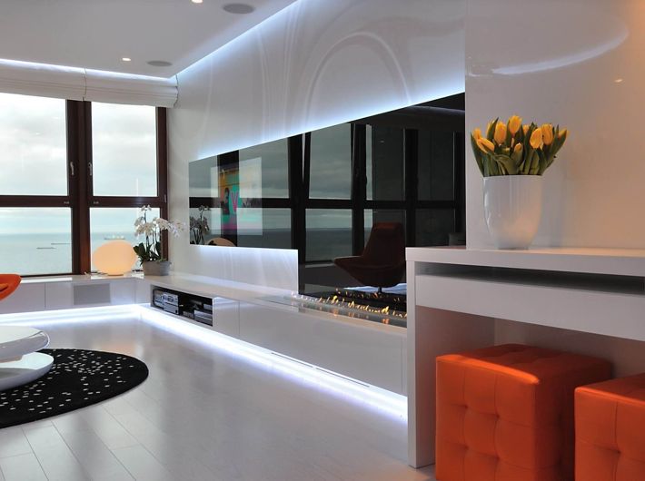 Em salas minimalistas, o uso de cores neutras, garantem elegância.