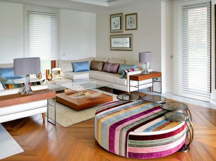 Em salas médias, faça à opção por puffs médios ou pequenos, ganhando área de circulação.