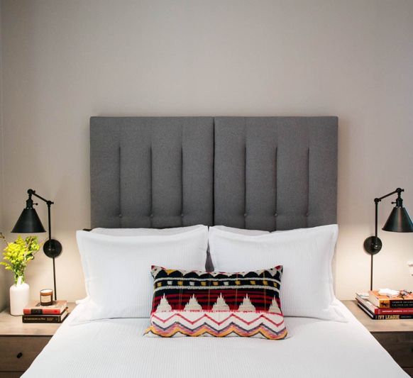 Espaços pequenos pedem cabeceiras que valorizem o espaço e promovam uma sensação de amplitude.