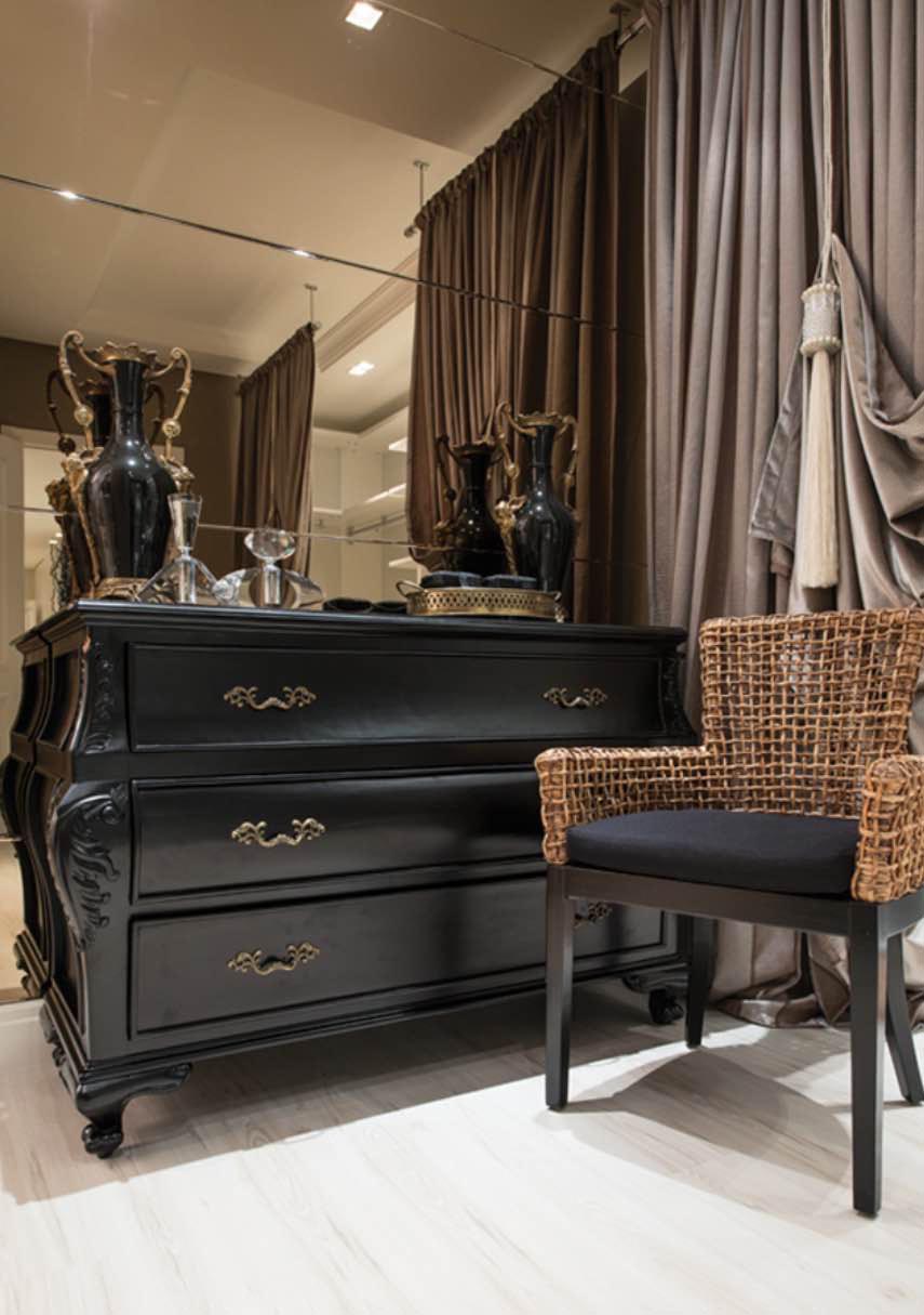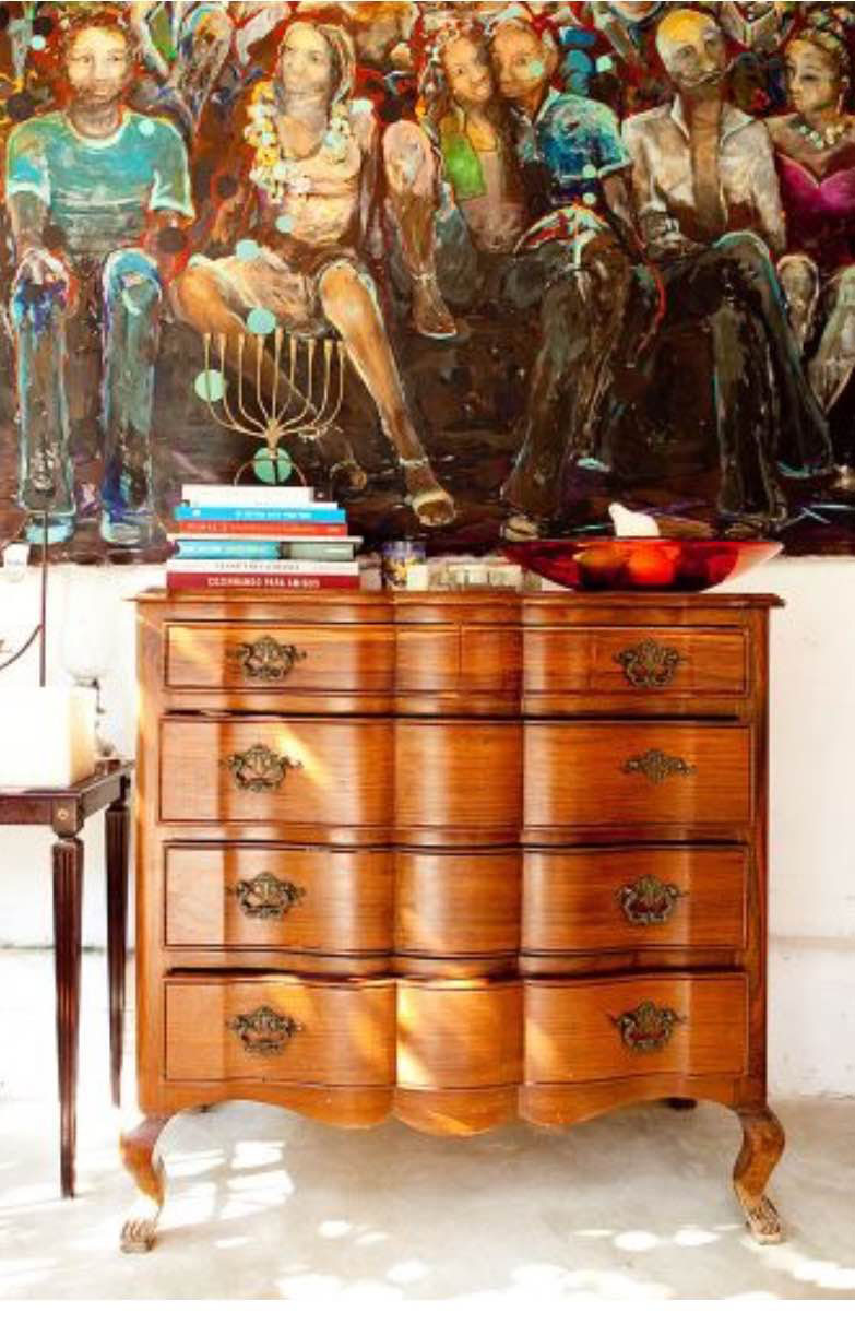 Uma simples cômoda antiga, pode agregar à felicidade por unificar a simetria de ser uma peça afetiva, herdada e que queremos que esteja presente em nossas casas, com a consagração de ter uma nova função, criando uma personalidade para os nossos espaços, além de contar um pouco de nossas estórias. Acho muito interessante o contraste do contemporâneo, moderno e inusitado, das variações da atualidade com o antigo, aquele móvel repaginado, que colocamos para criar uma atmosfera diferente, com um ar chic e bastante original. Isso promove o diferencial e a supremacia da decoração em nossas casas. É a vida que segue em forma de reminiscências e da afirmação de nossas ideologias poéticas dentro de nossos espaços.