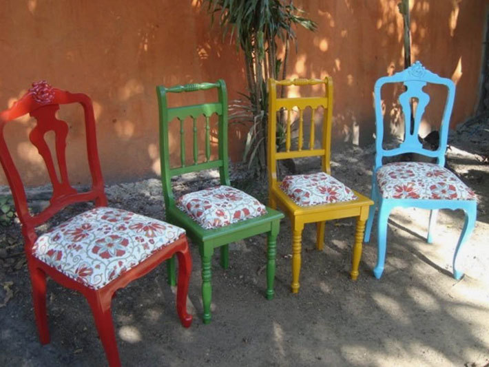 As cadeiras antigas também funcionam nesta mudança de visual, além de encontrar uma nova forma de uso para elas, ficam maravilhosas em qualquer tipo de salas, seja em algum cantinho específico ou até mesmo misturadas na sala de jantar, aumentando o número de lugares em volta da mesa. Lembre-se de trocar os tecidos, usando e abusando de cores que estejam presentes nos seus ambientes, prevalecendo a paleta dos tons.