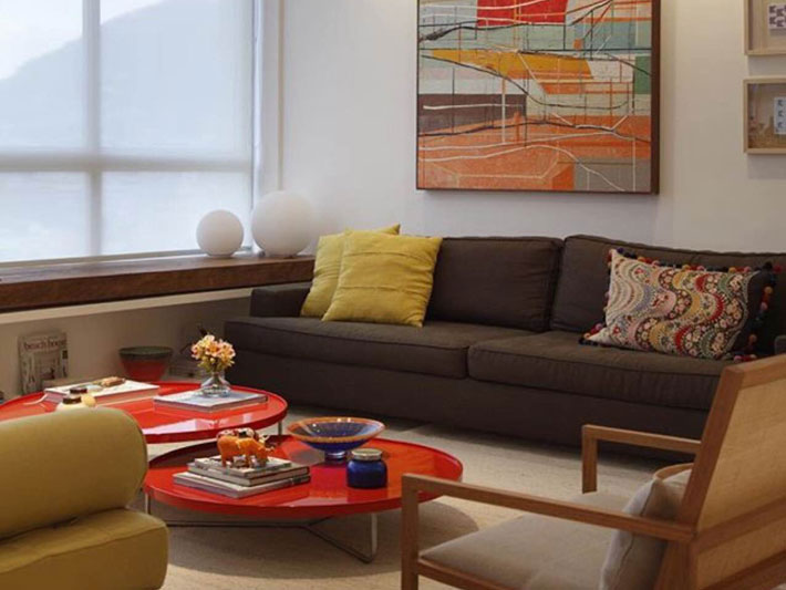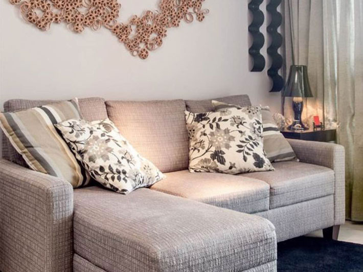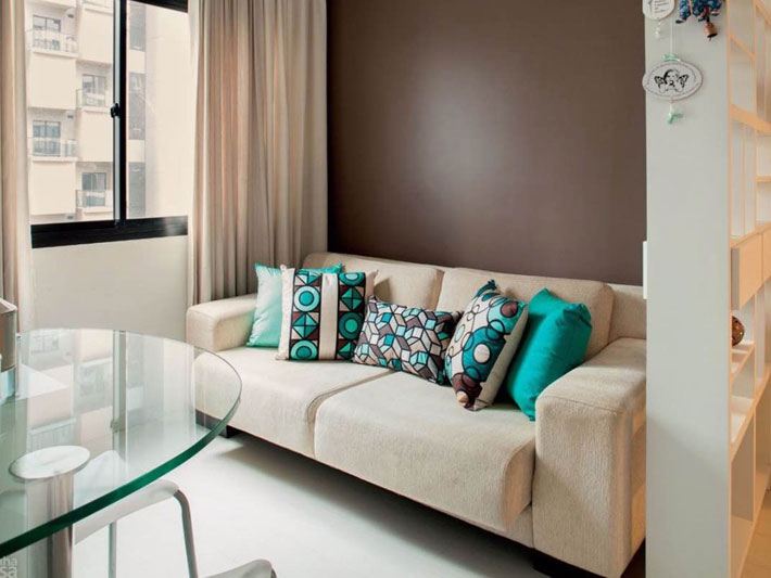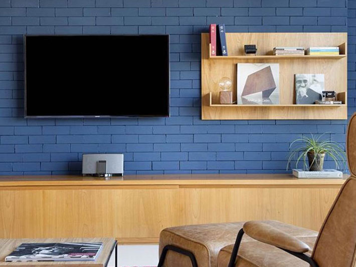 E para finalizar, os papéis de paredes adesivados são fáceis de aplicar, principalmente em uma pequena área, mudando o visual rapidamente, deixando seu ambiente acolhedor. Faça a opção por cores e motivos neutros. Mantas e almofadas, além de pequenos detalhes como uma cesta rústica, uma bandeja com copos, velas, a maneira de distribuir seus enfeites na mesa de centro fazem toda à diferença!