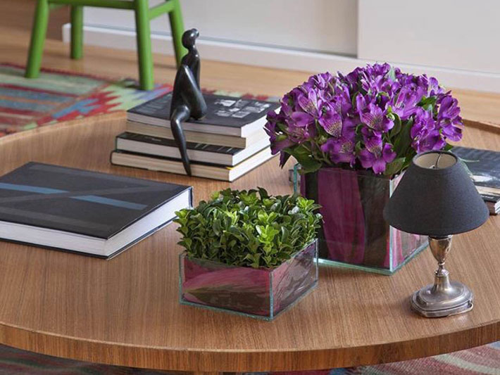 Outra forma de gastar pouco em sua repaginação, é colocar garrafas de cores e tamanhos diversos, com ou sem flores, em cima de mesas, aparadores, nichos, estantes. Além de fazer uma belíssima composição estética, você deixa seu ambiente super moderno e com frescor. Falando em verde, o poder de uma planta é enorme, uma espécie natural irradia luz e traz sempre boas energias para nossas casas, elas possuem um poder mágico, revigorante, deixam qualquer espaço humanizado. Aproveite os cachepôs, vasos e plantas que você possui, mude-as de lugar compondo outros ambientes.