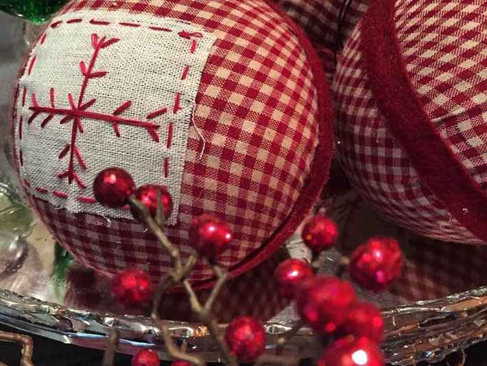 Entre às novidades que estão cada vez mais em alta, configuram as bolas natalinas confeccionadas por mãos habilidosas de artesãos ou até de nossas avós ou de qualquer um de nós que tenha o dom para trabalhos manuais, onde os retalhos de tecidos vibrantes são bordados com singelos traços em ponto cruz, depois colocados sobre bolas de isopor ou antigas que já temos, promovendo o contraste do artesanal com o industrializado.