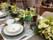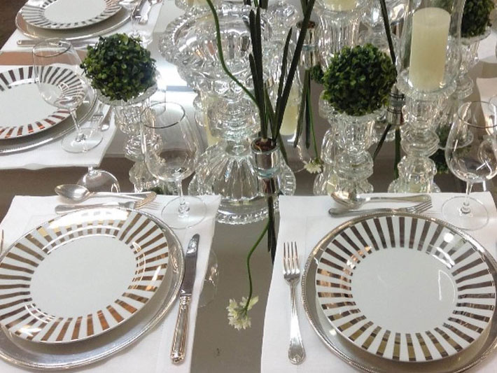 Caso não deseje montar uma mesa tradicional, com lugares específicos para cada um, coloque os pratos, talheres, copos, taças, distribuídos sobre o tampo em uma composição informal, sobrepostos lateralmente ou empilhados.