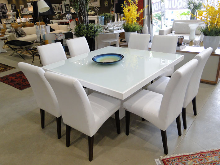 A mesa retangular "Duda", exclusiva para salas de jantar, com o tampo em laca fendi (em alta no momento, como já foi citado em outras colunas), contrasta com as cadeiras em tecido de linho, que podem também ser usadas como "cadeiras de aproximação", em salas de estar, configura entre as opções.