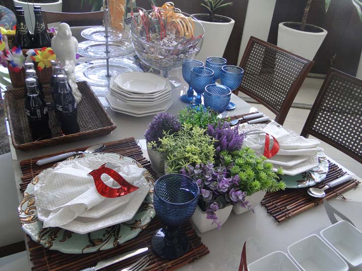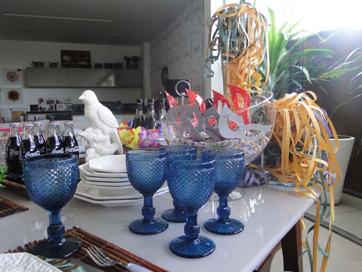 "Versáteis e econômicos, os confetes, cordões havaianos, máscaras e serpentinas são ótimos elementos decorativos que fazem referência ao tema, provocando um ótimo efeito estético e que pode ser adaptado em qualquer tipo de espaço, não poluído os ambientes, por apenas R$ 25 ", conforme Elaine.
