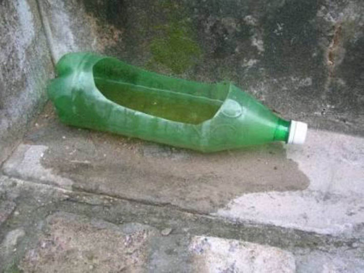 . Garrafas pet ou de vidro, vazias e sem tampa com acúmulo de água