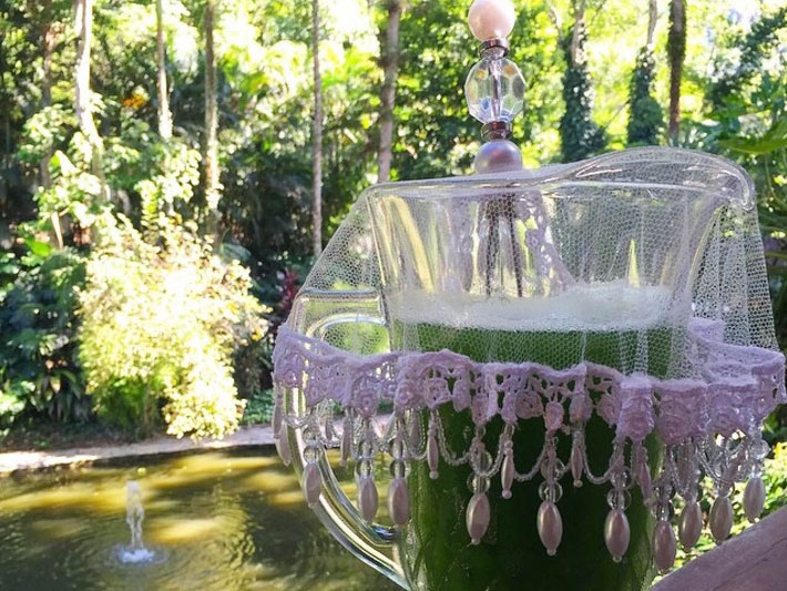. Copos esquecidos com águas e sucos (os sucos perdem a concentração ácida, voltam para o estado incolor, use telas de tule, para proteção)