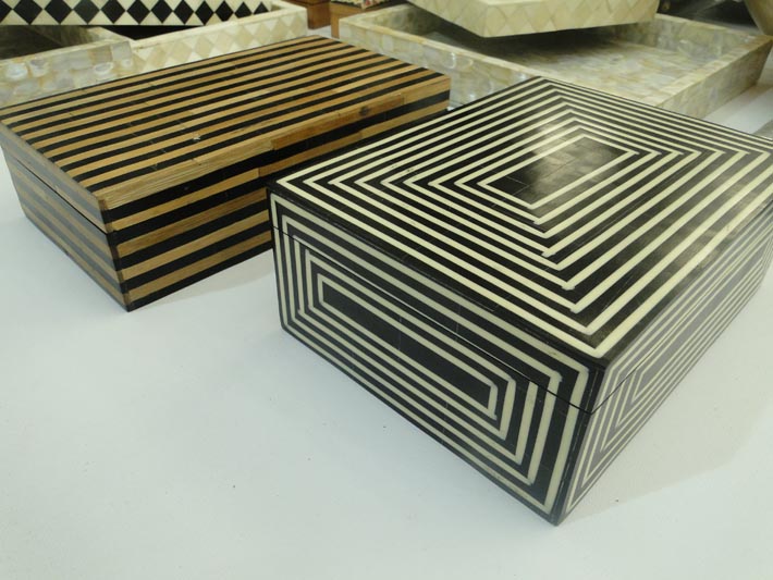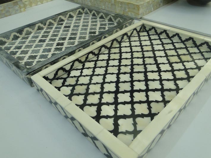 A madre-pérola, destaca-se no riquíssimo acervo das peças artísticas confeccionadas no arquipélago das Filipinas, onde os bowls ( tigelas ), de formas e tamanhos variados, permitem uma atmosfera sofisticada para preparar e servir pratos da gastronomia. As bandejas, ricas com trabalhos minuciosos em marchetaria, e espátulas com hastes de formas inusitadas, contrastam com peças utilitárias para a mesa. Puro design.