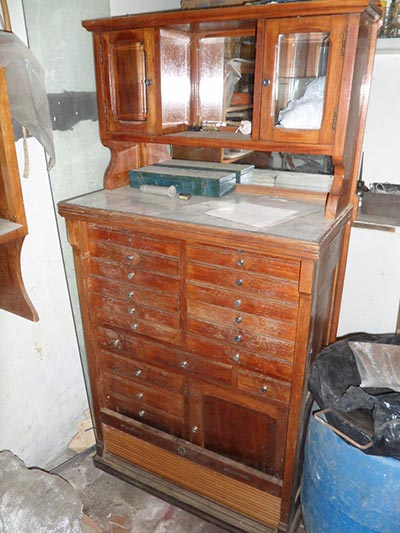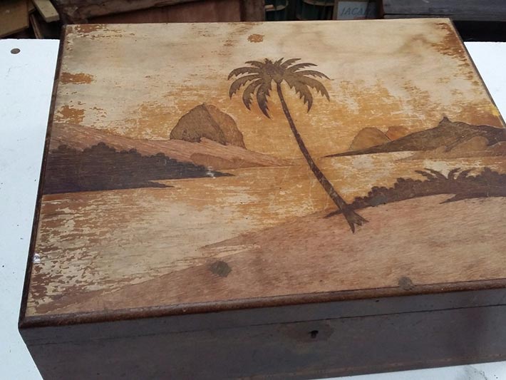 - Escrivaninhas ou papeleiras antigas com partes precárias.