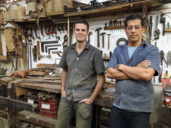 No seu staff, está presente o advogado Leandro Dagostinos, que agora restaura peças com precisão e conhecimento de causa. "O que mais gosto de restaurar são as cadeiras, cada uma é de um jeito e requerem uma atenção especial", fala Dagostinos. Para atender as solicitações imediatas de restauro, com peças difíceis de serem montadas novamente, Eduardo ainda recorre aos conhecimentos do pai: "Meu pai é uma fonte de inspiração e de informações, pois trabalhou com isso e com várias pessoas da área, como estudiosos e historiadores" se entusiasma.