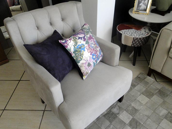 - Para às cadeiras e poltronas de apoio, às almofadas precisam estar de acordo com às dimensões do assento e encosto do móvel.