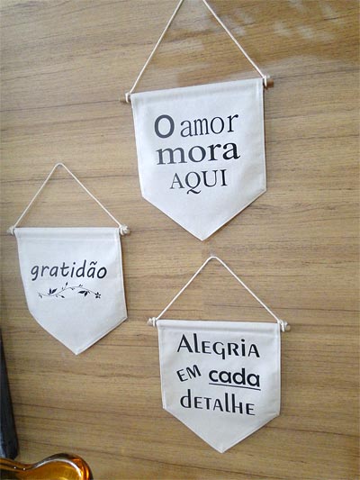 Atualmente, assim como os tapetes, que promovem todo o diferencial em um ambiente, as almofadas cumprem as funções decorativas e funcionais, modificando totalmente a atmosfera de um determinado espaço. Você pode aproveitar nossas dicas, reutilizando as almofadas que já possui em casa, e valorizando-as corretamente em novas composições. Uma questão importantíssima é a observação do encosto do seu sofá, caso seja muito alto, coloque almofadas proporcionais, para não causar uma lacuna entre o assento e o espaldar. Se o encosto apresentar altura baixa, siga com a mesma proporção. As flâmulas agregam um complemento decorativo para compor os ambientes, sempre com mensagens alegres e solidárias, fazendo uma alusão reflexiva sobre a vida ou nossos próprios pensamentos, harmonizando-se perfeitamente, com o novo conceito do design. "As flâmulas compõe os ambientes, acompanhando os quadros e almofadas, propõem um ar jovem e descolado para os ambientes" resume à profissional.