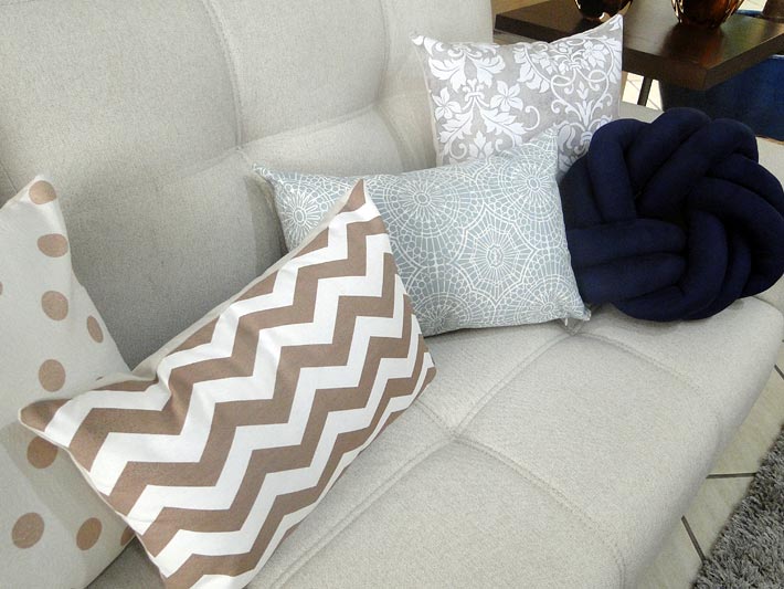 - O ponto de partida para à escolha das almofadas é a cor e o tecido de seu sofá.