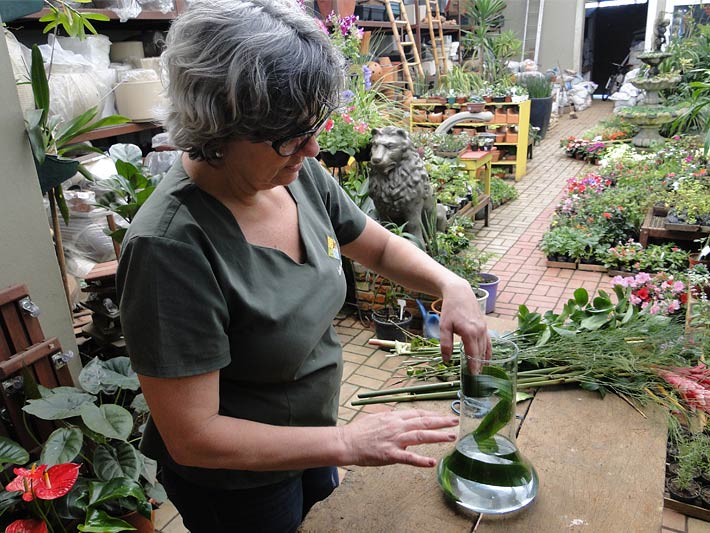 As flores devem ser cortadas com as hastes longas e maiores, até definir a altura do arranjo e qual ambiente ele será exposto, evitando a inutilização desnecessária de uma determinada espécie. "Para as mesas de apoio ou de canto, os arranjos podem ser altos", ensina Heloísa.