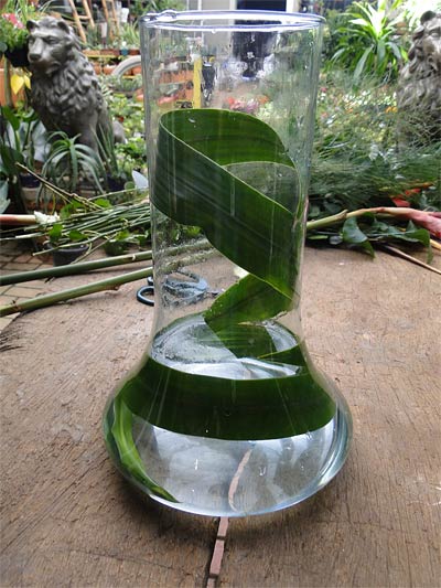 - Decore a jarra aleatoriamente com a folhagem verde em sua lateral interna.