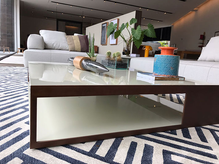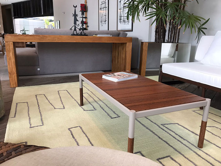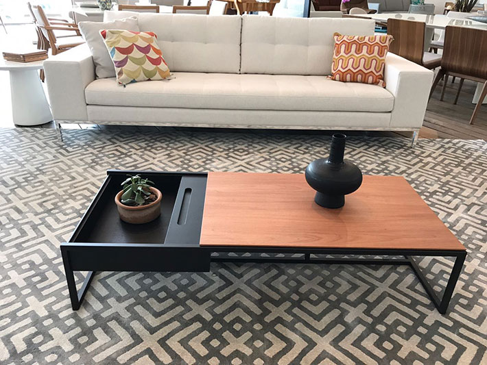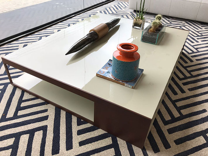 - As mesas centrais com detalhes metalizados na estrutura não necessitam de muitos adornos.