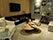 A integração entre os adornos, as peças do mobiliário e os revestimentos, dialogam-se com muita sutileza e elegância. O sofá retrátil, com design arrojado, permite que este espaço seja utilizado como salas de estar e TV, onde as almofadas em tons de marrom contrastam com o seu tecido em linho natural off-white. As gravuras, retratando árvores e galhos secos em profusão, neutralizam as cores sóbrias deste ambiente com muito glamour. O módulo para bebidas, faz referências aos antigos "carrinhos de chá", composto de objetos ornamentais neutros, como, um cachepô de orquídeas permanentes e garrafas de vidro decorativas. "Os espaços foram reduzindo-se, onde este móvel para bebidas mostra uma leitura diferente, proporcionando uma modernidade para o ambiente", sintetiza Ronaldo.