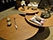 As mini-gravuras compõe extraordinariamente uma das paredes deste ambiente com a nuance em tons de avelã. A poltrona clássica em tecido de linho natural, permite outras opções de assento, como os puffs em madeira escura. "Os sofás e as poltronas estão em uma proporção ideal, trazendo o conforto para os usuários e não visando somente a estética", completa o designer. A iluminação é introduzida neste espaço com o rebaixamento do teto em gesso, proporcionando cenários luminotécnicos diferentes. "A iluminação é muito importante para os espaços residenciais e comerciais, valorizando os ambientes de uma forma intimista", acrescenta o profissional.