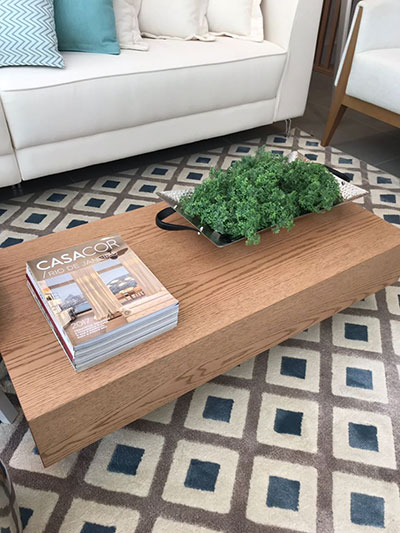 - Mesas de centro: Os laminados, em madeira natural com formas orgânicas, estão em evidência e combinam em qualquer espaço.