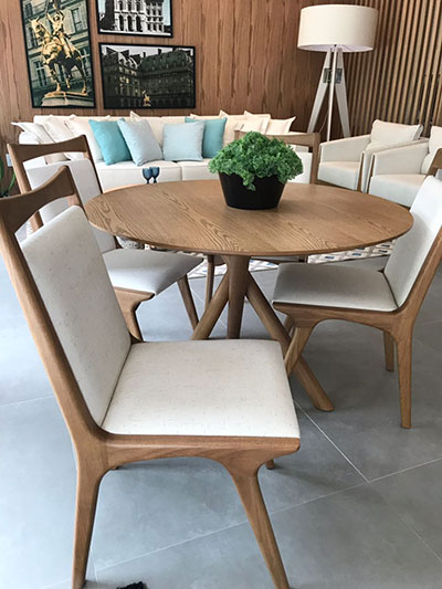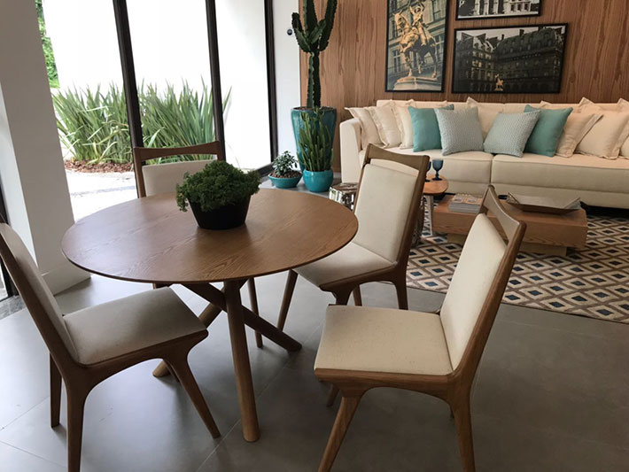 Caso a sua sala de estar apresente a função de sala de visitas com TV, as nossas sugestões enquadram-se perfeitamente, porém, verifique o eixo onde o aparelhos de DVD, TV a cabo, V-Ray, vídeo-game, estão instalados e não utilize adornos com alturas exorbitantes em mesas de centro. As mesas de jantar podem ser redondas, proporcionando uma atmosfera mais descontraída e versátil, como esta, observada em nosso cenário. As cadeiras, com encosto médio, ampliam à área total e aumentam a sensação de espaço. Utilize poucos adornos e objetos, permitindo assim, constituir um ambiente charmoso, sofisticado e contemporâneo!