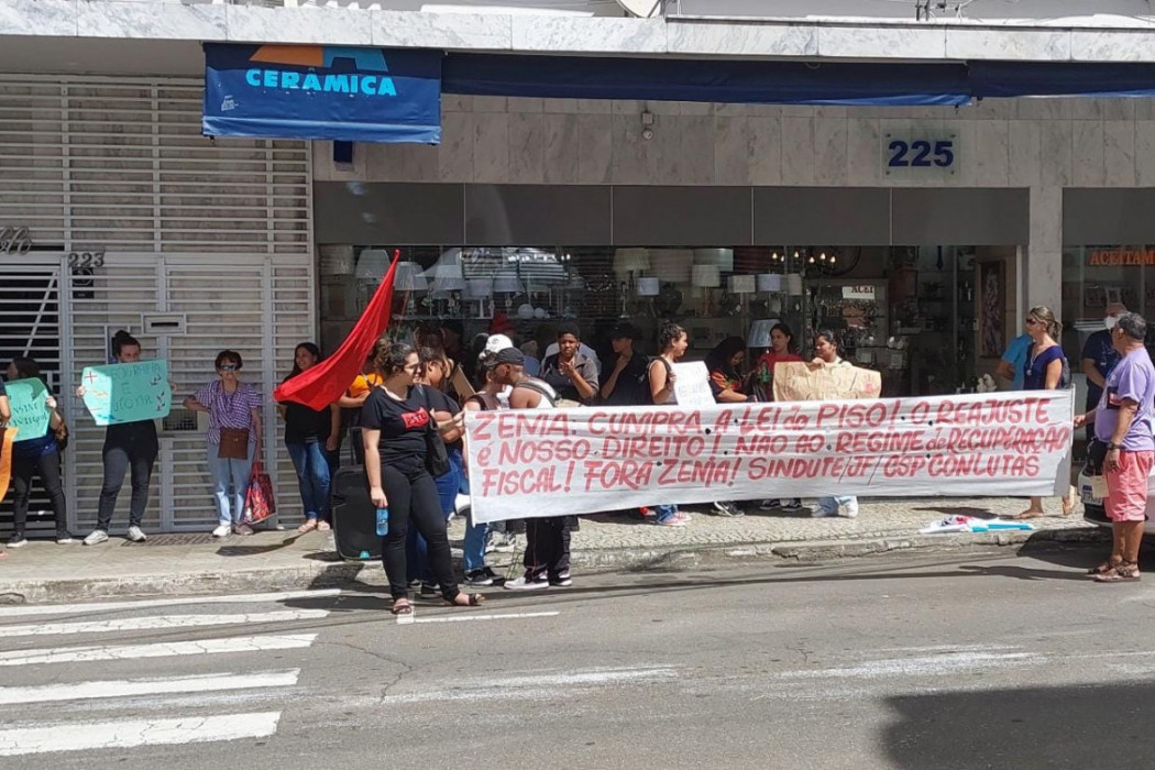 "Nós, trabalhadores da Educação, estamos protestando aqui contra a falta do pagamento do Piso Salarial Nacional, que não é cumprida em Minas. Exigimos, então, do Governo, que ele pague. E também protestando contra a perseguição que o Zema está fazendo contra a nossa entidade sindical desde o ano passado", explicou a a coordenadora do Sind-Ute Subsede Juiz de Fora, Victoria Mello.