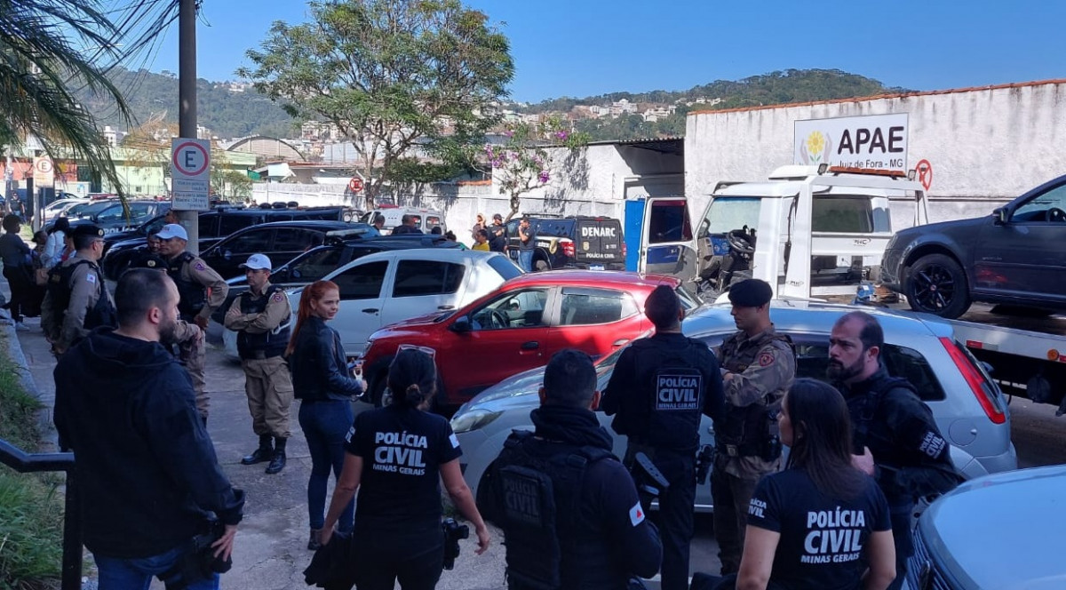 Equipes da Polícia Militar e da Polícia Civil desencadearam a operação conjunta "Sepulcro Caiado" contra o crime organizado em Juiz de Fora, na manhã desta quarta-feira (23). Depois de dois anos de investigação, foi constatado que a quadrilha com atuação interestadual mantinha vínculo com narcotraficantes do Estado do Rio de Janeiro e ramificações também no Estado do Espírito Santo e São Paulo. As polícias estiveram em 21 empresas suspeitas.