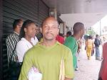 O an?ncio foi feito numa r?dio local no dia anterior. Pouco mais de 12 horas depois, o desempregado, Marcos Luiz, j? estava na porta do pr?dio. "Estou aqui desde 02h30, sem comer e sem dormir. Desempregado a quatro meses, Marcos, o primeiro da fila, n?o estava desanimado com os concorrentes at? mesmo porque n?o tinha no??o de quantos eram. "A fila est? aqui na esquina com a Esp?rito Santo, eu acho". Mas se conseguir o emprego, Marcos j? sabe o destino certo do primeiro sal?rio: "Vou ajudar minha ex-mulher e meus cinco filhos".
