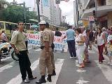 Com apitos e faixas de protesto, eles conseguiram parar o tr?nsito da