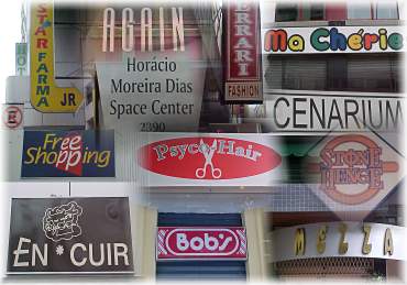 lojas, pr?dios... tamb?m adotam express?es estrangeiras