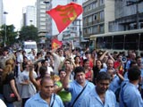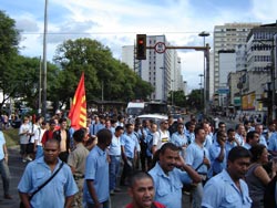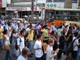 Enquanto isso, outros j? rumavam para a Rio Branco, pois os rodovi?rios, ao fim da assembl?ia decidiram protestar contra a proposta de reajuste de 6% oferecida pelos empres?rios do setor de transporte. Os rodovi?rios querem 14% de reajuste, redu??o da jornada de trabalho e seguro de vida. Uma assembl?ia na pr?xima semana pode at? decretar uma greve de motoristas e cobradores.