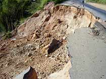 deslizamento de terra, que encobre parte da pista direita, no km 56, em Guarar?.
