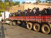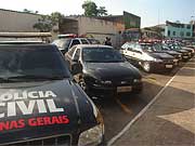 O trabalho envolveu cerca de cem policiais, metade deles de Belo Horizonte que vieram viabilizar a opera??o. Foram usados um helic?ptero que monitorou as a?es, mais de 20 viaturas e ainda nove caminh?es e uma carreta para transportar as m?quinas apreendidas.
