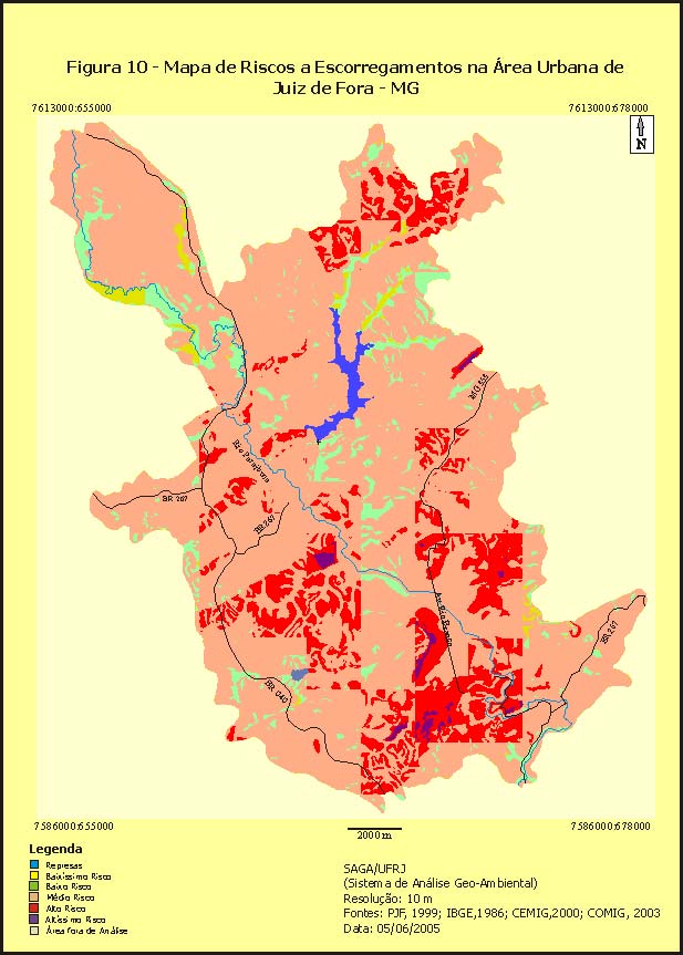 Os riscos são divididos em naturais, como escorregamento e erosão, riscos tecnológicos e sociais. No estudo são considerados os riscos naturais. Para a realização dele, foi preciso mapear a litologia, que mostra os tipos e a distribuição das rochas, a intensidade de lineamentos, onde são localizadas as fraquezas das rochas, a declividade, o uso e a ocupação do solo. Com tais mapeamentos, os dados são cruzados no computador para se chegar ao mapa que aponta os níveis de risco de cada área.