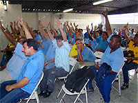 Na reunião que contou com a participação de aproximadamente 50 trabalhadores, a classe rejeitou, por unanimidade, a proposta da classe patronal na última segunda-feira, 1º. Motoristas e cobradores decidiram apresentar uma contraproposta à Associação Profissional das Empresas de Transporte de Passageiros de Juiz de Fora (Astransp). "Baixamos o índice de reajuste reivindicado de 14,2% para 14%", informa o vice-presidente do Sindicato dos Trabalhadores em Transporte Coletivo de Juiz de Fora (Sinttro), Paulo Avezani. Além do reajuste salarial, a categoria reivindica o fim da compensação de horas e aumento do tíquete-alimentação de R$ 160 para R$ 260, além de redução da jornada de trabalho de sete para seis horas diárias.